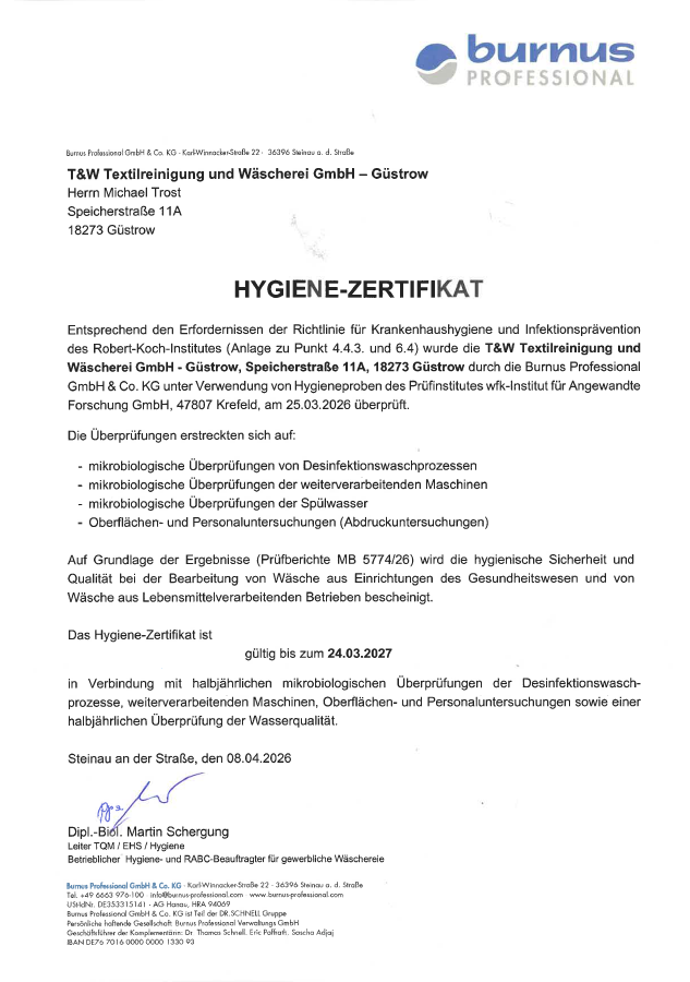 Die Frauen und Männer in der Wäscherei und der Chemischen Reinigung versuchen immer durch Kundenservice und Qualitätsarbeit ein zuverlässiger Partner aller Kunden zu sein. Zum Kundenstamm der Textilreinigung Güstrow gehören viele private Kunden, genau so wie Hotels, Gaststätten, Pensionen, Behinderten- und Pflegeheime, Kindereinrichtungen, Vereine, Feuerwehren, Rettungswachen, Sozialstationen und viele weitere Branchen.
